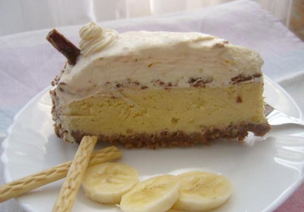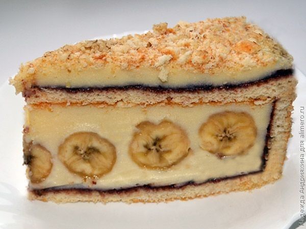 Начинка: Тонко нарежьте бананы. Поместите 1 слой торта на сервировочное блюдо. Выложить нарезанный банан. Аккуратно намазать пудингом. Положите второй слой торта сверху. Залить глазурью верхний слой; осторожно разровнять к краям.