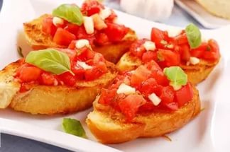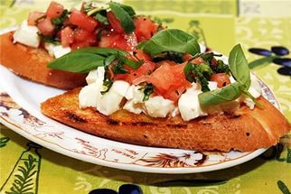 Сегодня мы с вами приготовим одну из самых популярных итальянских закусок – брускетту. Это горячий бутерброд, который подается в горячем виде и сверху украшается сыром моцарелла, свежими листьями базилика и томатами черри. Если вы любитель итальянской кухни, то вы уже должны были слышать, а может даже и пробовать эту чудесную закуску.