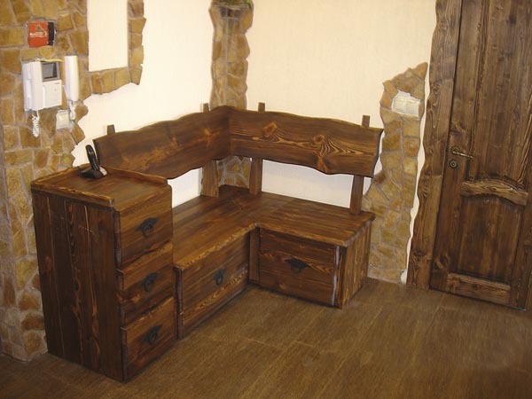 - Эстетичность — еще одно явное достоинство. Все предметы интерьера, выполненные из массива дерева, эстетически привлекательны, приятны на ощупь.