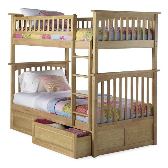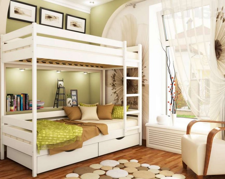 - Если семья имеет двое детей, то двухъярусная кровать будет отличным решением, чтобы сэкономить место в комнате. Площадь действительно существенно экономится в два раза, можно не забивать голову где будет находится игровая зона или стоить письменный стол.