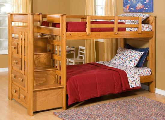 - Лестница должна быть немного под наклоном, для маленьких детей не следует покупать кровать с вертикальной лестницей. Нога ребенка должна полностью лежать на ступеньки лестнице, во избежание соскальзывания и падения.