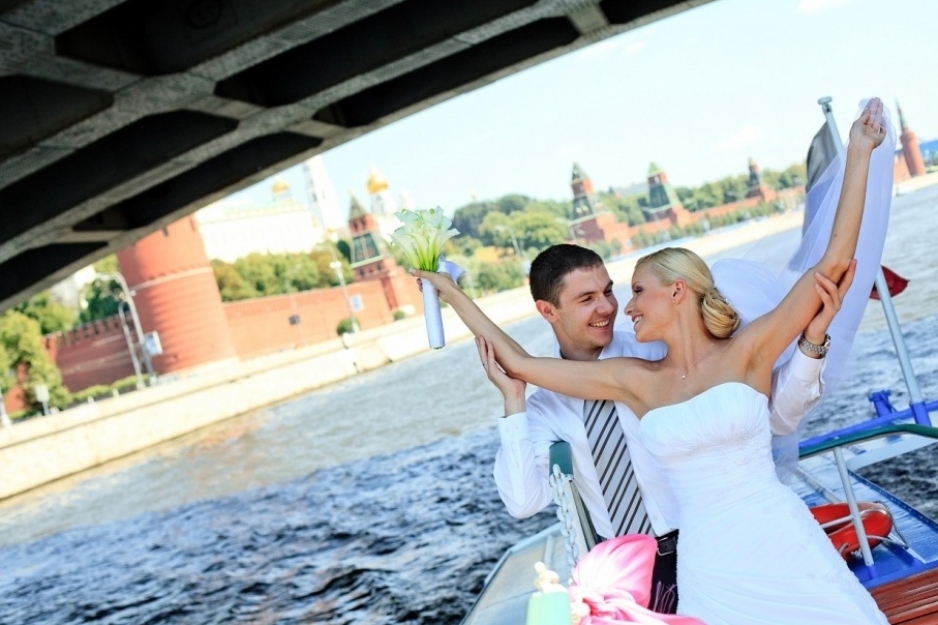 Следует заранее уточнить весь маршрут, чтобы внести в него свои поправки. Гости могут встречать молодоженов не на причале, а уже на воде — туда виновников торжества доставит небольшой катер, а может быть, романтическая лодка. Это будет просто великолепно.