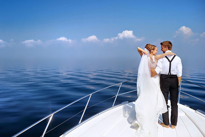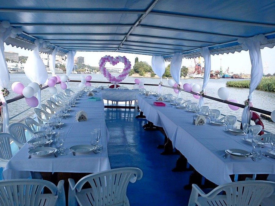 Свадебное торжество на берегу моря, на воде, когда вы находитесь на судне — нарядном, белоснежном, просто шикарном. Это так прекрасно. Неповторимые виды, пейзажи, особенная символическое слияние земли и воды — все это делает свадьбу на теплоходе просто идеальным выбором.