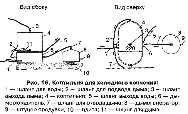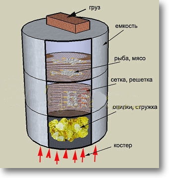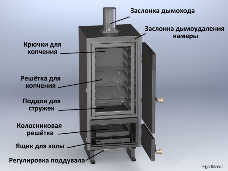 Как же работает такое чудо-устройство? Коптильня работает также, как и все коптильное оборудование. На дне выкладываются опилки, над ними на решетках и крюках, а может быть, на шампурах, помещают продукты.