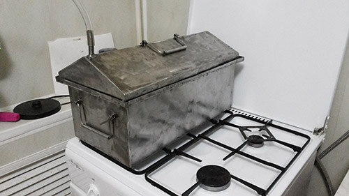 Для того чтобы жир, который вытоплен из мяса, а также соки из этого продукта не попали в опилки, дым выгорания не впитался в лакомство, под мясом следует установить поддон. Когда будет происходить нагревание на открытом огне или электрических тэнах, опилки будут тлеть. При этом будет выделяться дым, которым пропитаются продукты. Для ускорения приготовления отличным помощником станет температура в девяносто градусов выше внутри коптильной емкости.