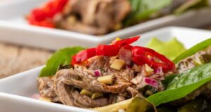 Салат из вареной говядины и соленых огурцов
