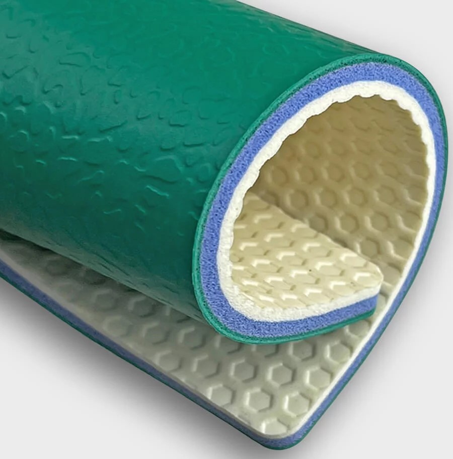 - Резиново-полиуретановые покрытия — эластичны, амортизируют удары, хорошо подходят для залов и боксерских залов. Обычно состоят из вспененного резинового заполнителя и верхнего чистого PU-слоя.