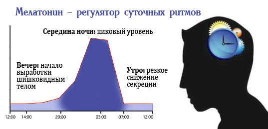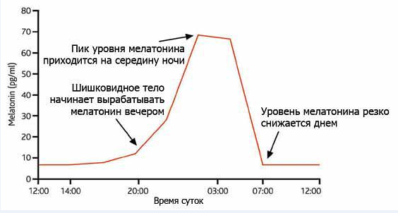 Для выработки мелатонина нужно бывать на открытом воздухе днем не менее часа, количество гормона будет незначительно, в том время как ночью производится порядка семидесяти процентов вещества всего организма. Немаловажным является при каком освещении находится человек в течении дня, если освещение днем предельное, то выработка гормона падает, при уменьшении освещения – увеличивается. Наиболее активный период производства гормона начинается приблизительно в восемь часов после полудня, максимальная концентрация достигается в период с двенадцати часов ночи до четырех утра. Полезно спать в комнате, куда не проникают солнечные лучи света, для выработки гормона в максимальном количестве. Каждый день вырабатывается тридцать микрограмм мелатонина.